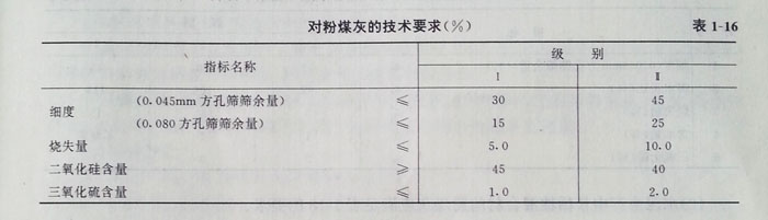 (2)水泥生產(chǎn)中作活性混合材的粉煤灰應(yīng)滿足表1—18的要求。